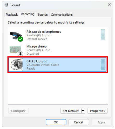 Once you’ve downloaded your VAC, head over to your Windows sound settings. Go to System > Sound. Choose your VAC as your input source (Cable Input, VB-Audio Virtual Cable) and click on OK.
